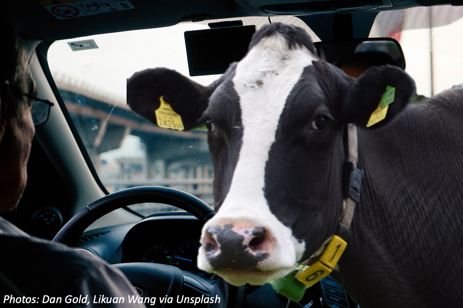 Maybe not, but they do like going for a ride! Jessica Nelson spotted a cow riding in line at the McDonald’s drivethrough in Marshfield, Wisconsin. It was just a baby – called a “calf” – and there were 2 more calves with it in the back seat. The owner, Bernie, told Jessica that he had just bought them at a fair and was grabbing a snack on his way home – we bet the cows ordered milkshakes.