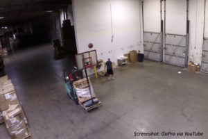 Making a basketball shot is hard, but how much harder when the hoop is on a rolling forklift? Read on to do the math and