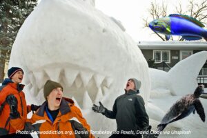 It’s fun to make a snowman when there’s enough snow. But it must have been even more fun to make a giant snow shark! Read