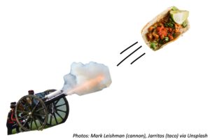 Talk about fast food – this cannon shoots out tacos that go flying through the air! Read on to do the math where food meets