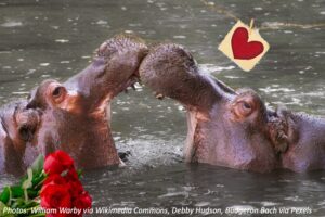 Whether these hippos are kissing, playing, or just shoving each other out of the way, it sure looks like they’re having fun! Hippos are pretty