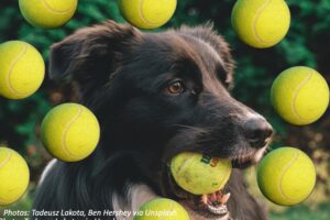 Dogs don’t play tennis like people do. They’re good at chasing the ball, but then they’d rather chew on it than do anything else. That