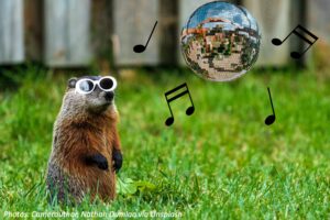 Groundhog Day is when groundhogs pop their heads out of their holes and try to tell the future about the weather by looking for their