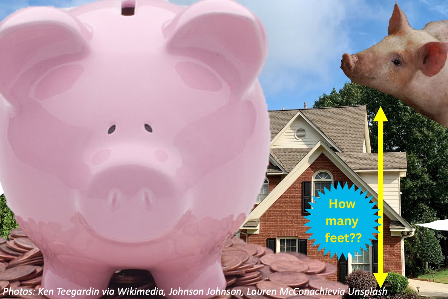When you save pennies, the money can add up fast. So you need a piggy bank to hold them. The biggest piggy bank ever built stood 26 feet long, 18 feet tall, and 18 feet wide! Inside it had 2 floors so kids could climb around. This round pig could have held about 4,400 cubic feet of pennies. Imagine a cube 1 foot wide in each direction, each of which can hold almost 50,000 pennies…and now imagine more than 4,000 cubes. How much money is that — and can anyone carry it?