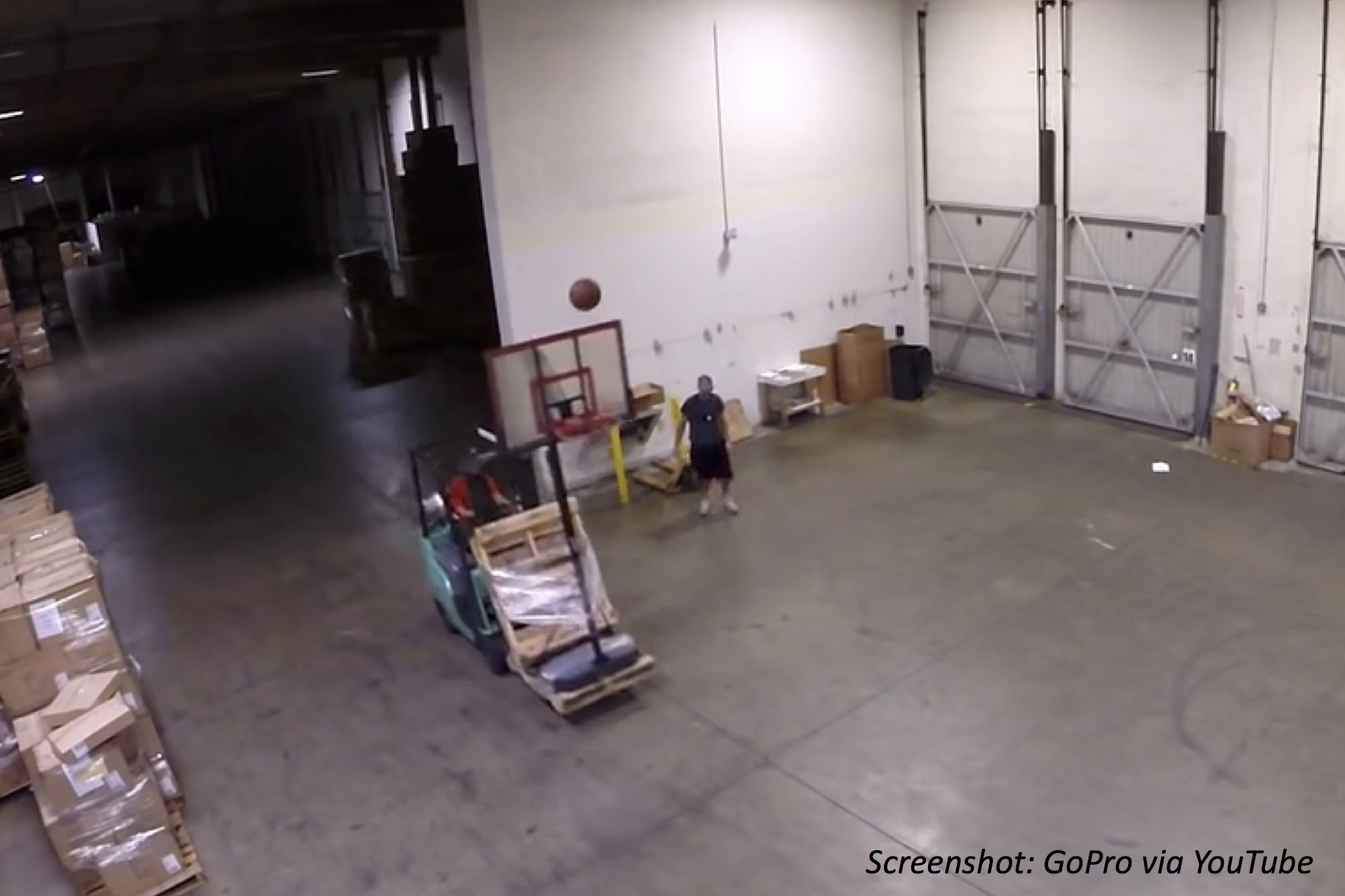 A forklift is a small truck with two poles that stick out to lift heavy objects. In this video, two friends strap a basketball hoop onto the sticks, which the forklift jacks up a good 20 feet into the air. Then one guy does a whole set of amazing shots. We don’t know the numbers behind these amazing shots, but we can use math to guess!