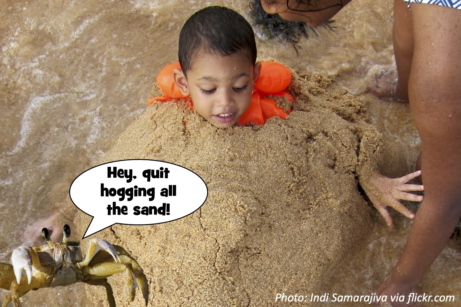 Now that it’s summer, our fan Sophia Y. asked, how many sand particles would it take to cover a person? First, there’s a grown-up formula to figure out how much area your skin covers! We tried it for a 50- pound, 42-inch tall kid, and got 8 1/2 square feet of skin area. Meanwhile it takes about 1 million grains to cover just 1 square foot. That’s just a thin layer…if you want a few inches of sand, you need hundreds of layers, giving us more than a billion grains! Luckily the beach has plenty of sand for the job.