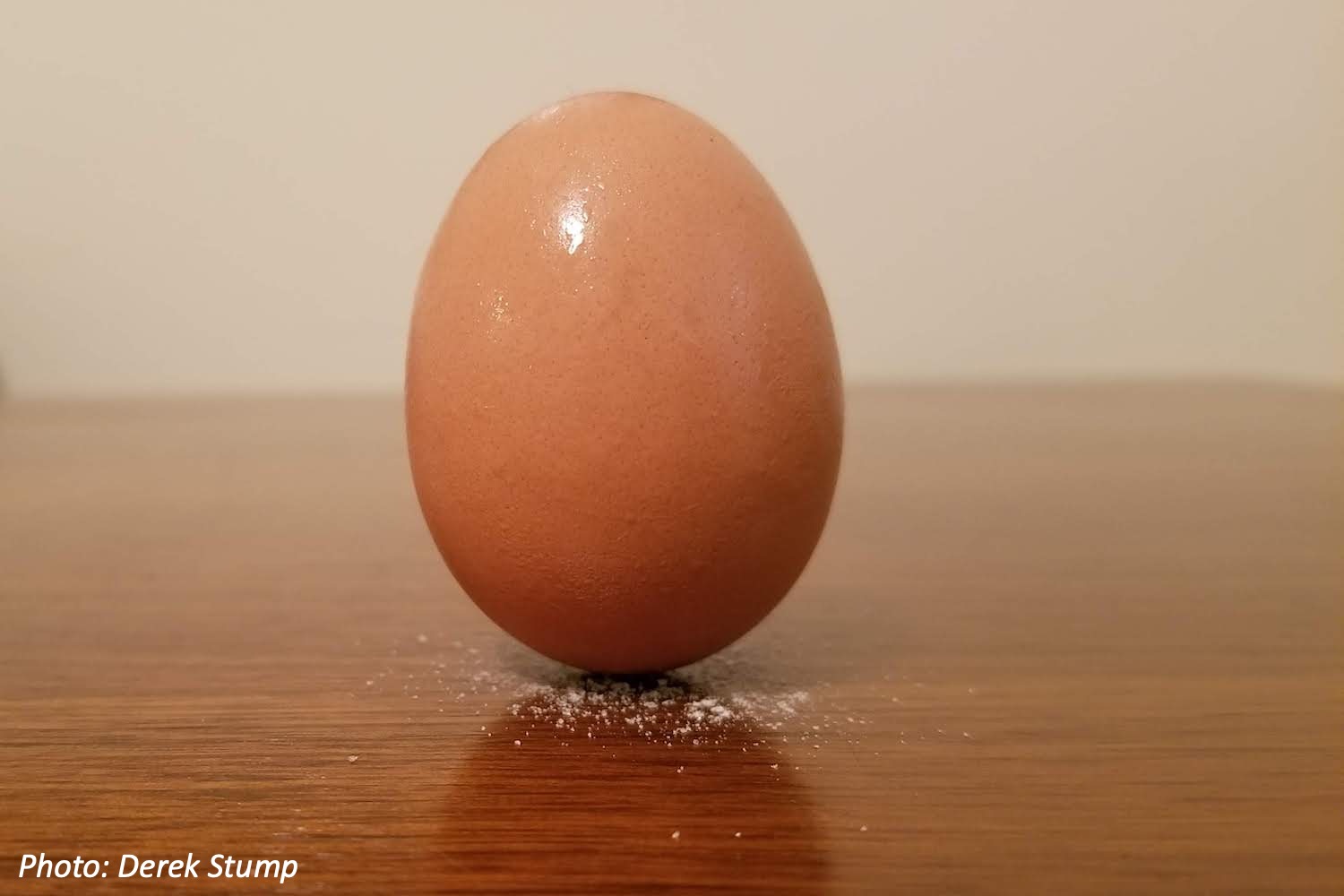 March 20 is the vernal, or spring, equinox. Equinox in Latin means "equal night": on this day Earth is tilted neither towards or away from the sun, so every spot has 12 hours of both day and night. Because of that perfect tilt, people try to balance an egg on end at the exact moment of the equinox. It works -- because you can balance an egg any time! It's a game you can try today or any day!
