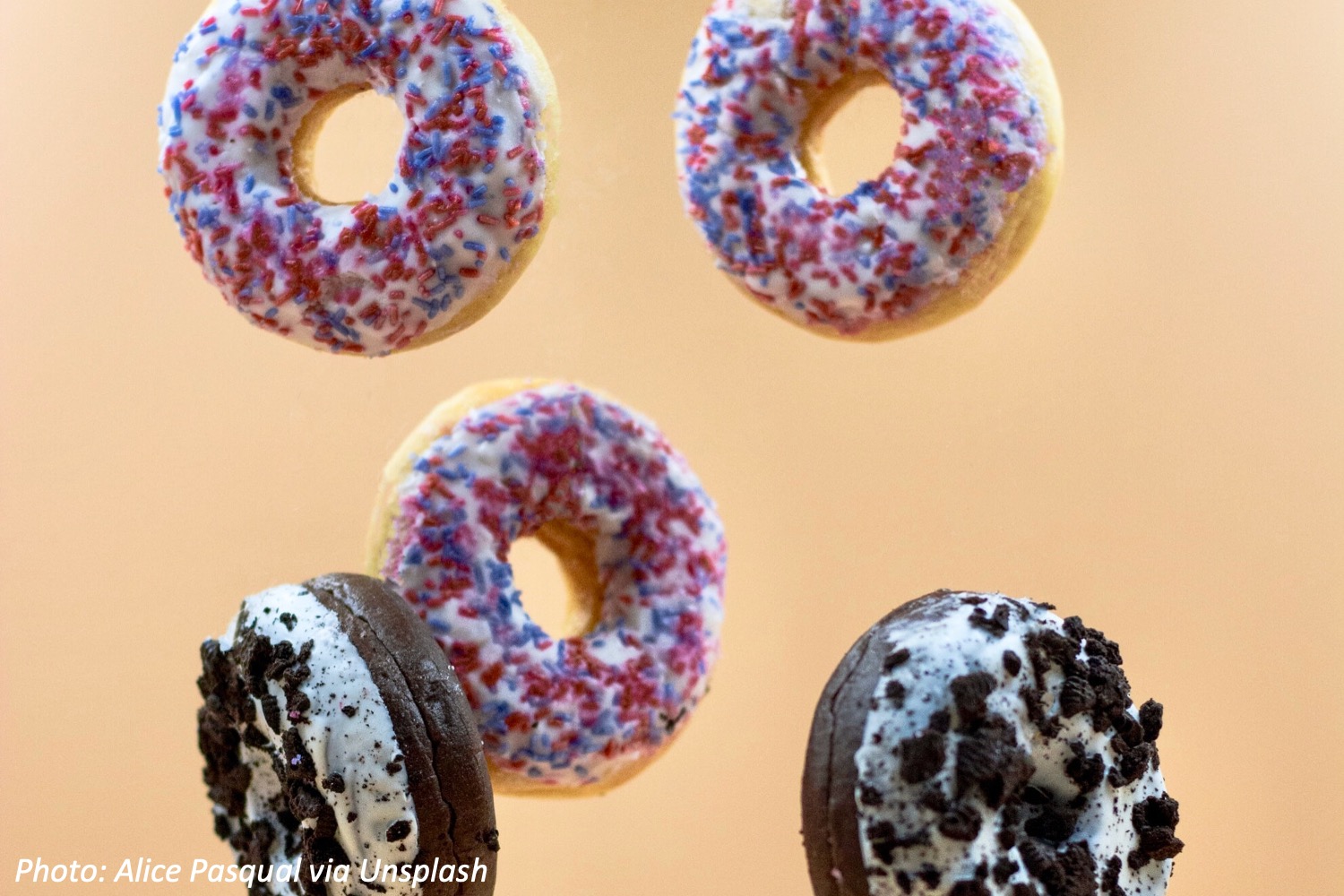 Big kids: Regular airplanes fly about 7 miles above Earth. This donut flew 20 miles high. If you flew halfway between the two, how high would you be? Bonus: If the donut faced the Sun at 3:00 pm and spun all the way around every 4 minutes (at a constant speed), was it facing towards or away from the Sun at 3:18?