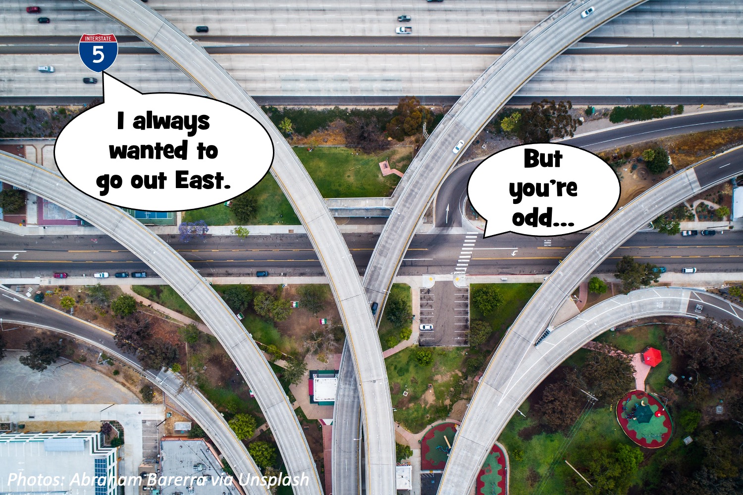 Little kids: They will be the even numbers: 2, 4, 6, 8, and 10. Bonus: I-20, I-30, I-40, I-50, I-60, I-70, and I-80. But there’s no real I-50 or I-60, since they’d run right near the US highways with those numbers.
