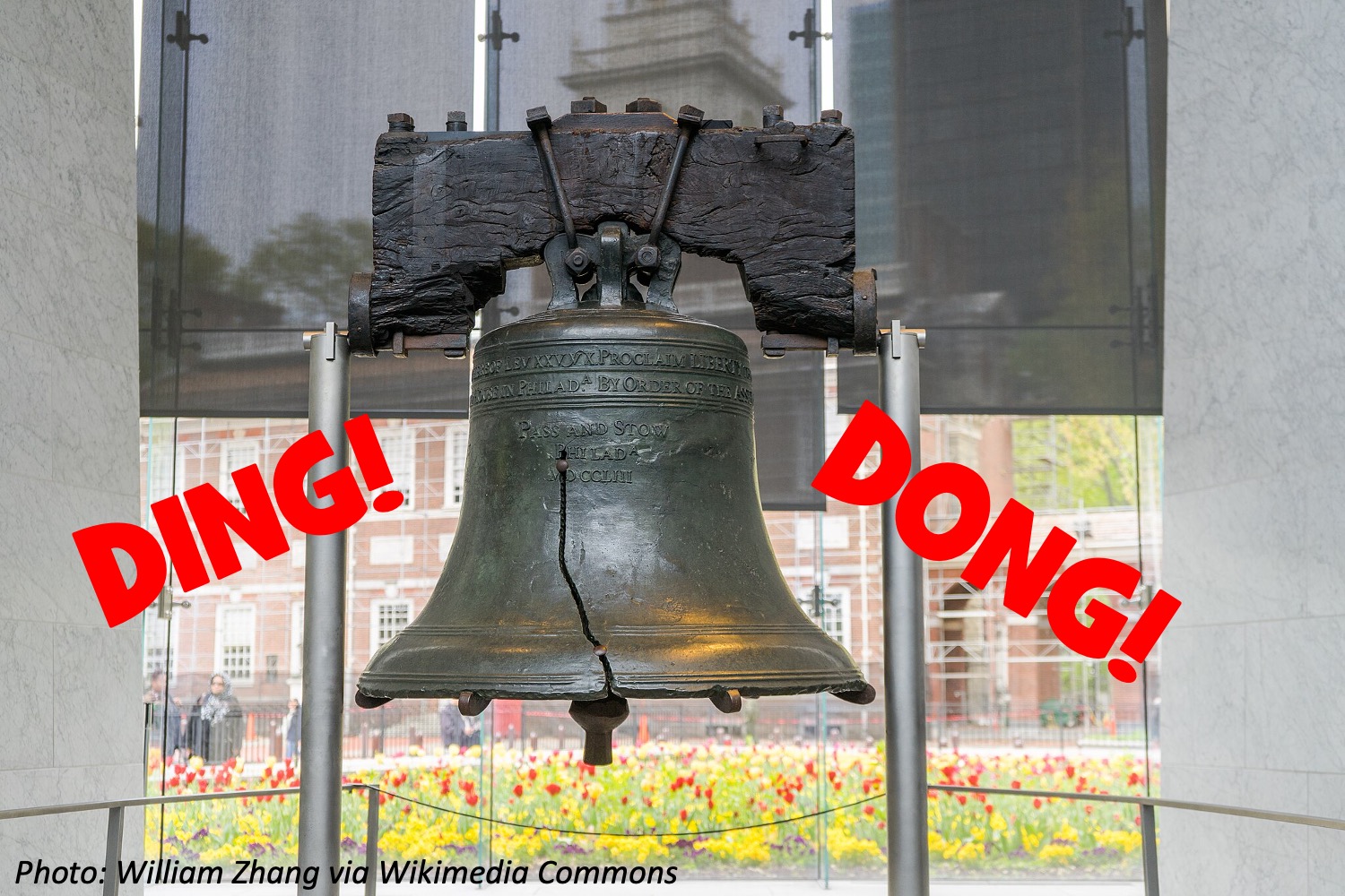 Little kids: The clapper — the stick that bangs the inside of the bell to make a ding — swings back and forth to hit both sides, making 2 dings. If you tug on the bell twice and each tug makes 2 dings, how many dings do you hear? Bonus: To ring the bell at 12 noon, how many times do you tug the rope to make 12 dings?