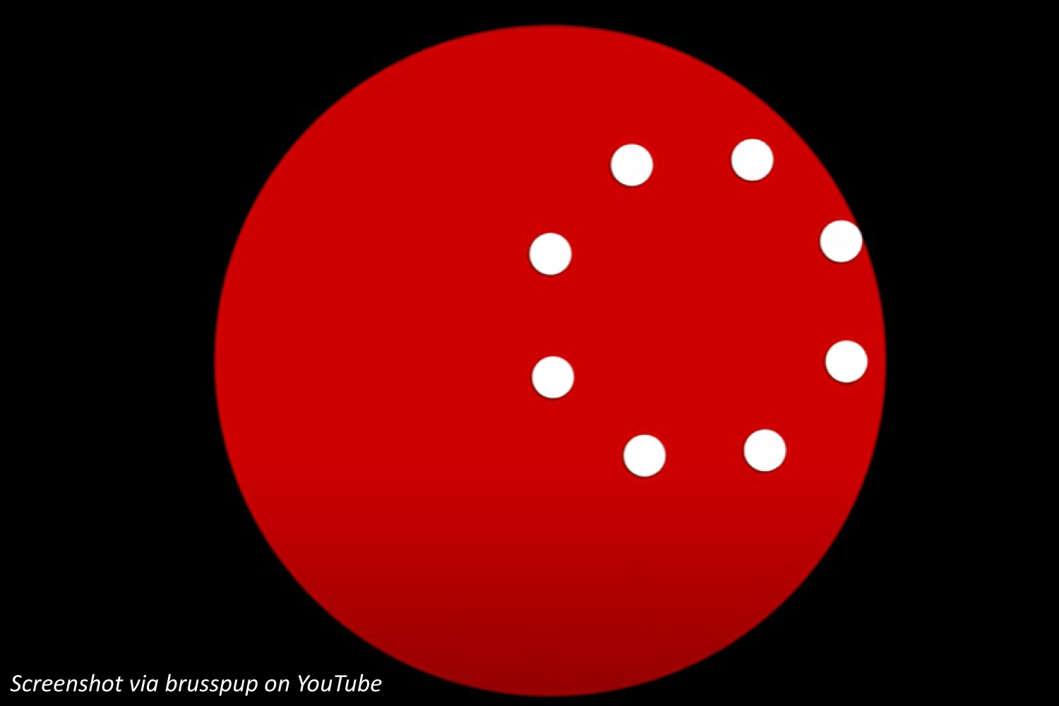 Big kids: Each line cuts across the big circle through the middle, like slicing a pizza. How many pizza pieces should 8 lines eventually make?  Bonus: If it takes 5 seconds for the balls to travel around the circle and you have to watch it 13 times to believe it, how long do you watch?