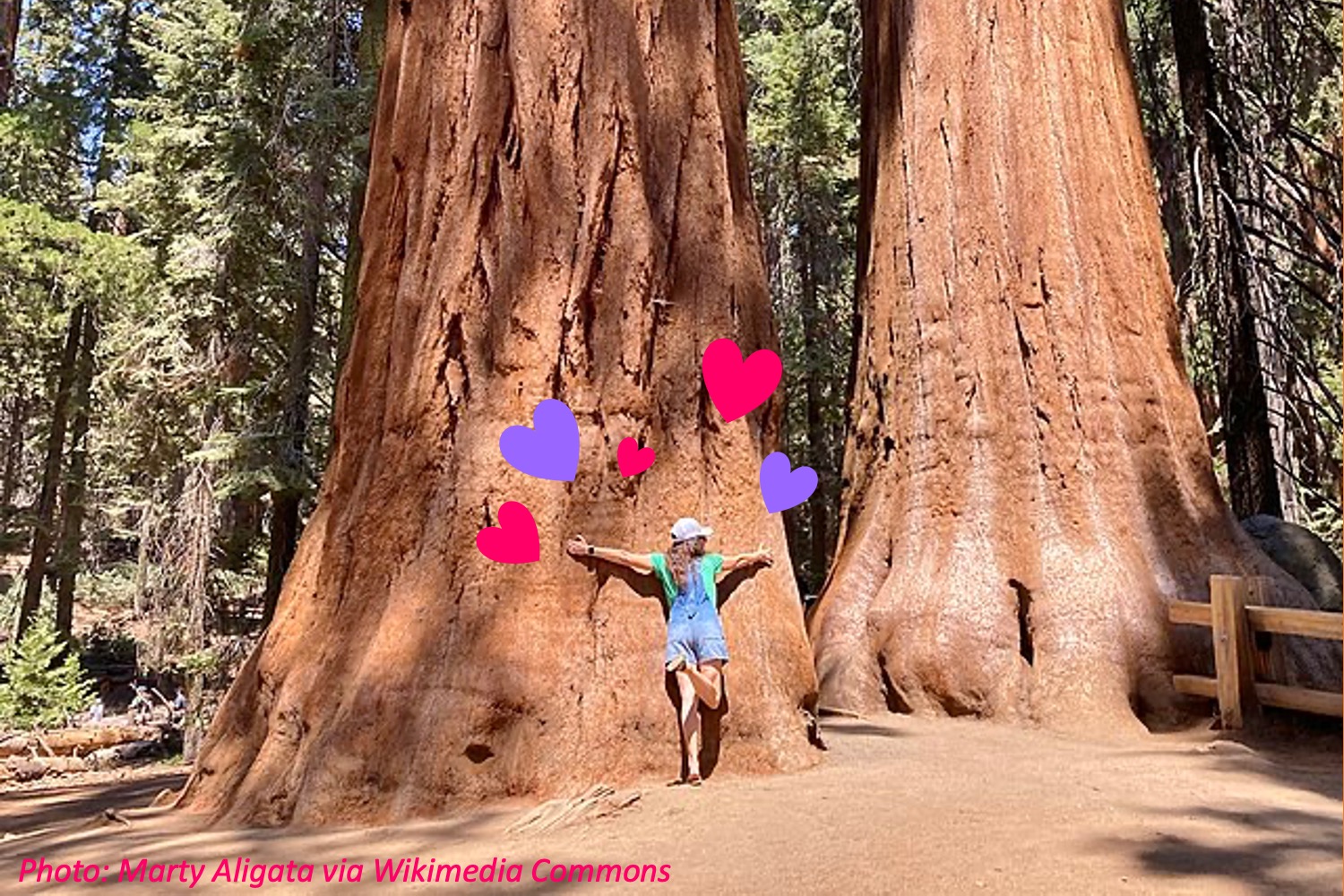 Big kids: The distance around a tree is about 3 times the width. If General Sherman’s trunk is 25 feet wide, about how many feet around is the tree? Bonus: Using that answer, if your armspan is 5 feet, at least how many people your size have to hold hands to reach all the way around?