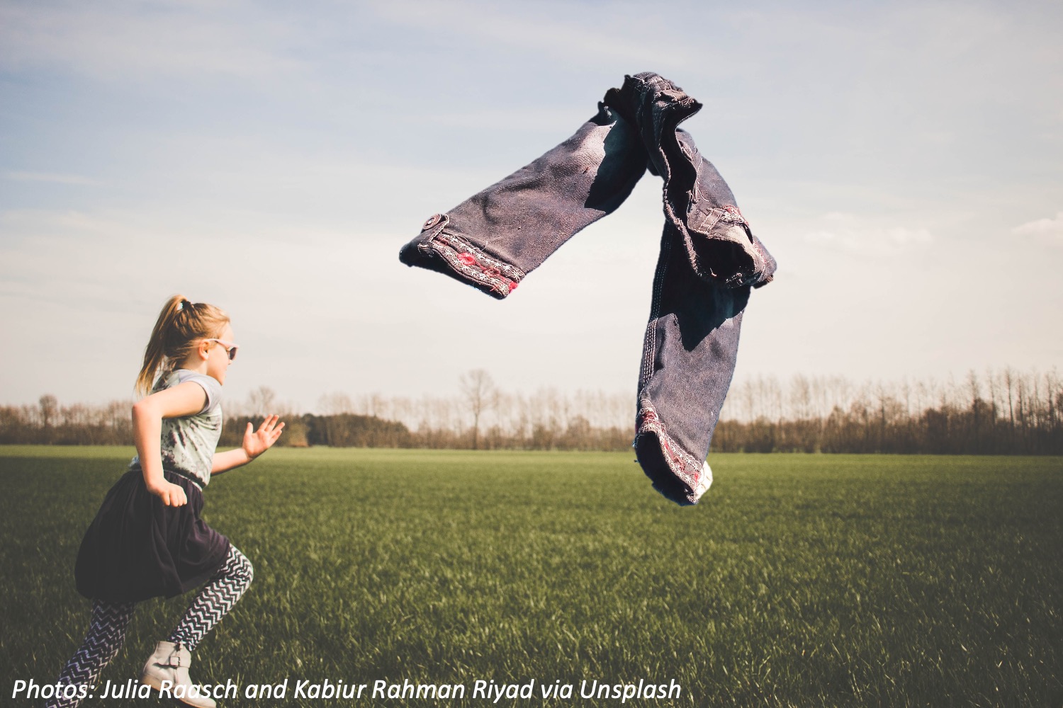 Little kids: The left will take more (5 steps) while the right will take 4.  Bonus: 10 pant legs.