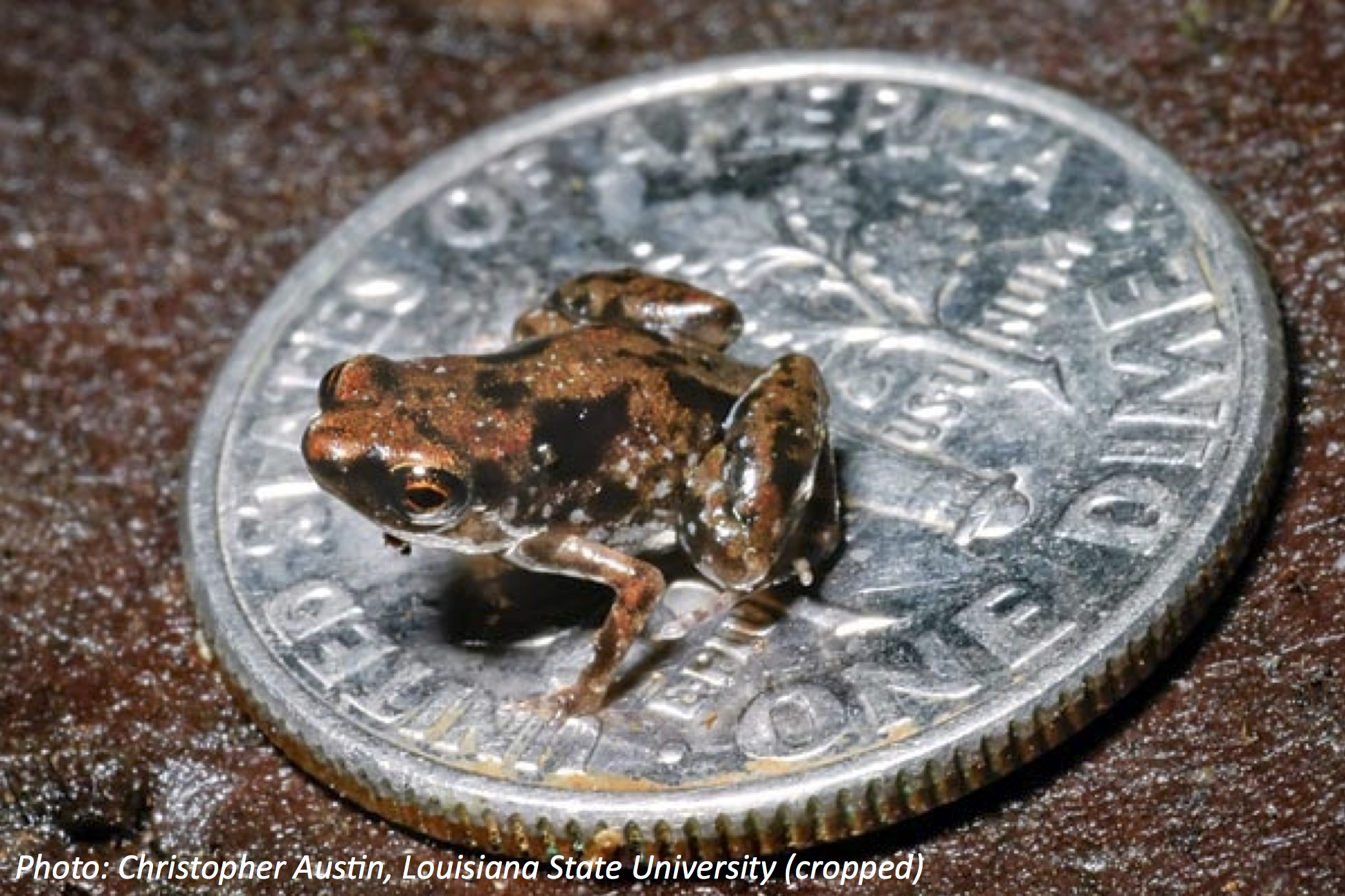 You may not believe it, but the teeny frog on that coin is real. It’s smaller than a dime or a Cheerio. Two scientists, Christopher Austin and Eric Rittmeyer, were exploring a tropical forest when they heard a weird sound. They looked everywhere, but couldn’t find the thing making that noise. Finally they just scooped up a bag of leaves and took it home, where the teeniest frog they had ever seen hopped out. The best part is, if you want one as a pet, you can carry him around in your wallet.