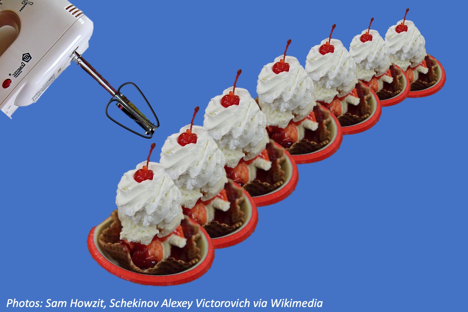 The sky’s the limit: If each 6-cup can covered 10 feet of sundae, and there were 3 scoops of ice cream per foot, did each scoop get at least 1/4 cup of whipped cream?