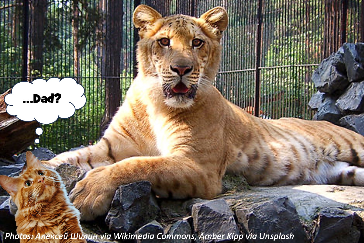 Wee ones: A liger roars more like a lion than a housecat. While counting in your head, roar 5 times!