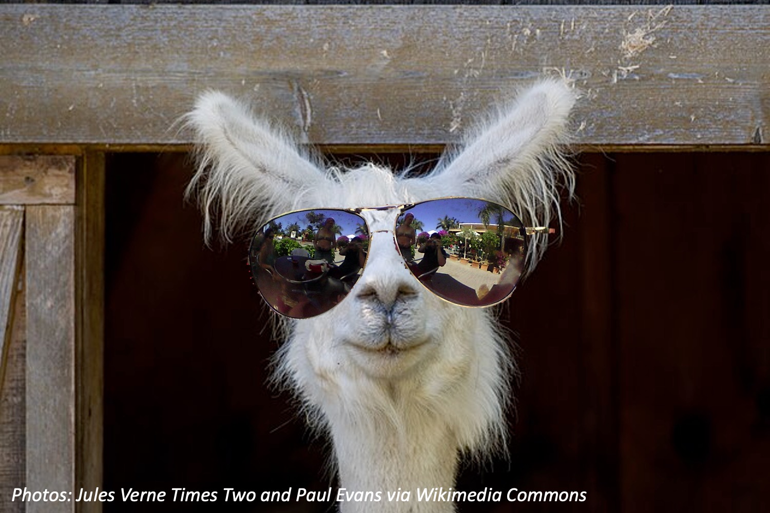 Little kids: If the llama is 6 feet tall and you are 4 feet tall, how much taller is the llama? Bonus: Maybe he was just looking for snacks, since llamas eat 15 pounds of food a day. If this llama has eaten 2 pounds of corn and 7 pounds of grass today, how many pounds of alfalfa can he have for dinner?