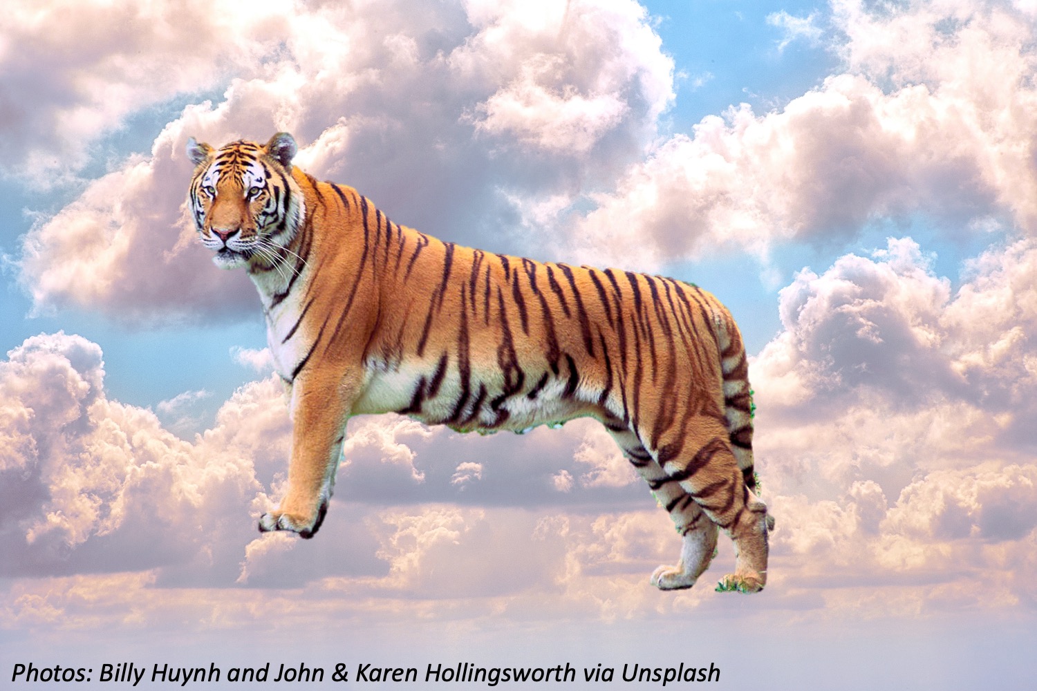 Big kids: If a tiger’s body is 11 feet long with a 2-foot tail after that, and 3 tigers cross the bridge walking nose to tail, how long is that tiger chain? Bonus: If a tiger, lion, leopard and jaguar all want to cross the bridge in any order, in how many orders can they do that? (Assume they’re one behind the other, not in pairs.)
